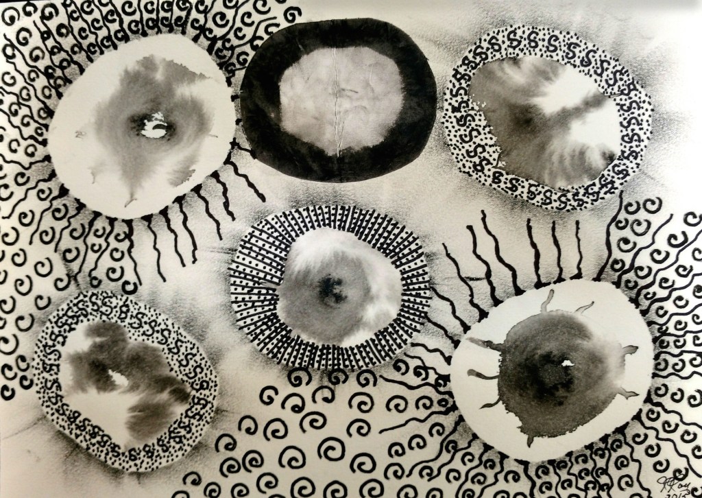 Virus, acrylique et techniques mixtes, mai 2020 vendue