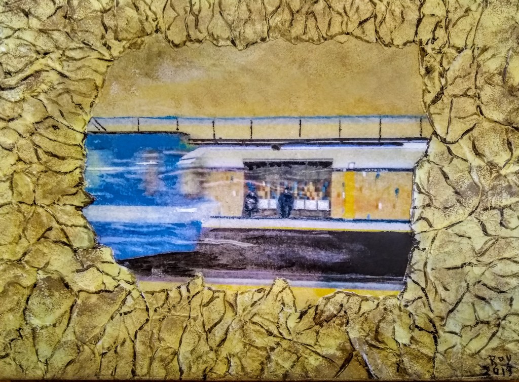 Ouverture de métro, acrylique et techniques mixtes, décembre 2019 vendue