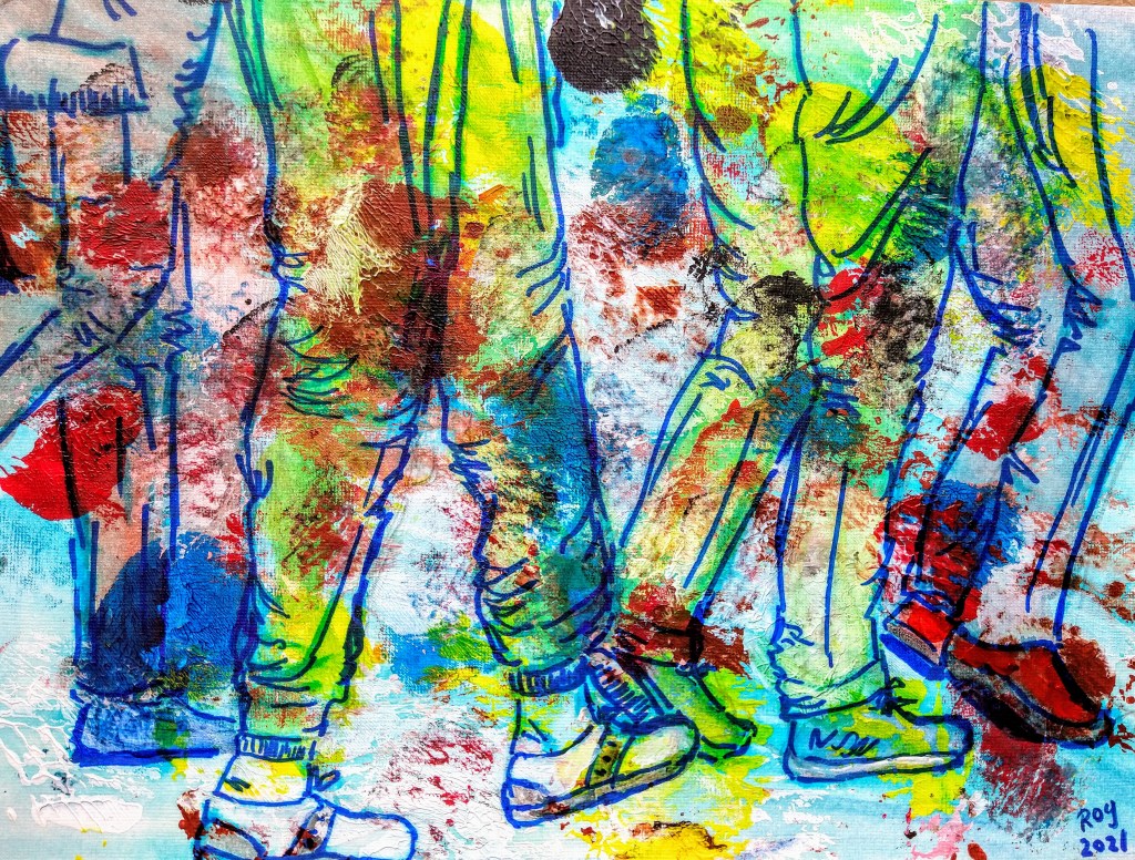 Métro ou discothèque ? Acrylique, 2019, techniques mixtes vendue